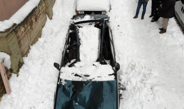 Aracın tavanı çökerken, yoldan geçen kızın kar kütlesinin altında kalmaktan kurtulduğu anlar kameraya yansıdı.Olay Arnavutköy Merkez Mahallesi'nde dün saat 12.00 sıralarında meydana geldi. Bir binanın önünde park halinde bulunun otomobilin üzerine çatıdan büyük bir kar yığını düştü. O sırada aracın yanından geçen bir kızdan kar yığınını altında kalmaktan son anda kurtuldu. Tavanı çöken araç kullanılmaz hale gelirken, o anlar kameraya yansıdı. Öte yandan hasar gören araçlar havadan görüntülendi. Aracın oğluna ait olduğunu söyleyen İbrahim Gül, "Öğlen namazına gittim geldim. Kar çatıdan düşmüş. Baktım araba pert olmuş. Oğlum yazın almıştı. Yeni yaptırmıştı. Oğlan satacağım diyordu" ifadelerini kullandı.