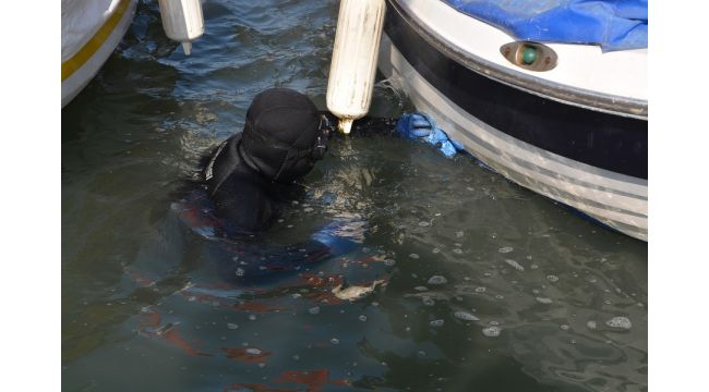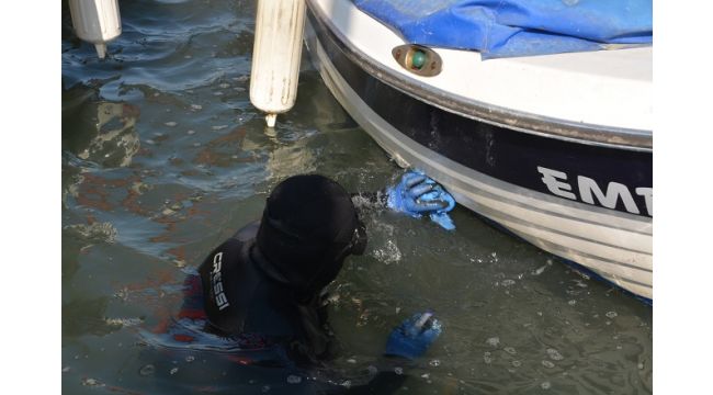 İZMİR (İHA) - İzmir Aliağa ilçesinde, petrol türevi atıkların denize sızmasının ardından, kirlenen teknelerde özel bir ilaçla dalgıçlar yardımıyla temizlendi.
