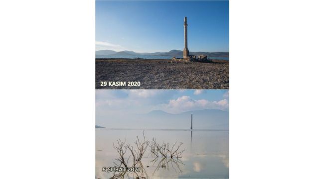 Son yağışların ardından tahtalı barajı havzasında çekilen görüntüler, bir iki ay önce yürüyerek yanına gidilen eski Bulgurca Camii’nin yeniden sular altında kaldığını gösteriyor.