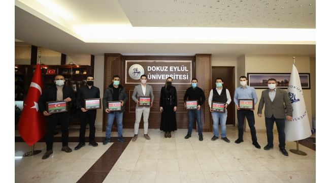 Geçtiğimiz yıl Azerbaycan’ın zaferiyle sonuçlanan Dağlık Karabağ Savaşı’nda; cephe bölgesine giderek buradaki askerlere tıbbi destek veren ve aralarında Dokuz Eylül Üniversitesi Tıp Fakültesi asistanlarının da yer aldığı tıp doktorları, Dokuz Eylül Üniversitesi (DEÜ) Rektörlüğünü ziyaret etti. DEÜ Rektörü prof. dr. nükhet hotar tarafından ağırlanan hekimler, cephe bölgesinde yaşanan gelişmeleri; tıbbı müdahale ve bakım ile ilgili çalışmalarını; Türkiye’den Azerbaycan’a gidiş süreçlerini anlattılar.