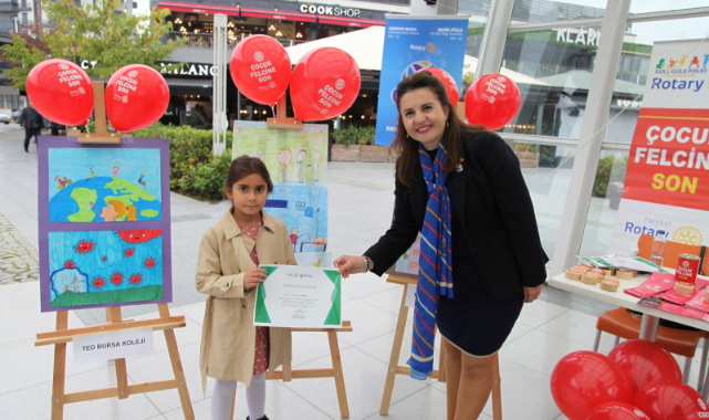 24 Ekim Çocuk Felci ile Mücadele Günü’nü Yeşil Rotary Kulübü’nün de desteğiyle düzenlediği ilkokullar arası resim yarışmasında dereceye giren resimlerin sergilenmesiyle kutlayan Heykel Rotary Kulübü, bu yıl üçüncüsü düzenlenen etkinlikte çocuk felci hastalığını aşı konusundaki duyarlılığa dikkat çeken çocukların resimleri ile anlattı. Kulüp Başkanı Mevlüde Sezer, halka açık alanda yapılan sergide hastalığı anlatan broşür ve balon dağıtarak etkinlik boyunca yanlarında olan Yeşil Rotary Kulübü’ne ve emeği geçen tüm üyelere teşekkür etti.