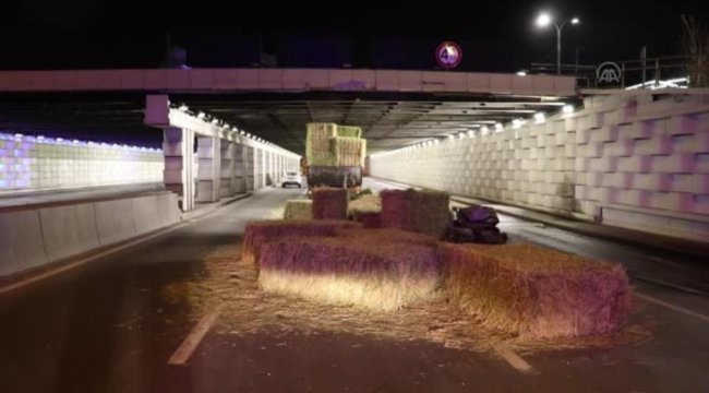 İzmir'in Konak ilçesinde saman balyaları taşıyan tır, alt geçide sıkıştı. Konak'tan Balçova istikametine giden Muhammed Emin Alpkan (25) yönetimindeki saman balyaları yüklü 33 CDE 73 plakalı tır, Cumhuriyet Bulvarı'nda bulunan 4 metre yüksekliğindeki alt geçidin tavanına çarptı. Alt geçide sıkışan tırın üstündeki saman balyalarının bir kısmı döküldü. Polis ekiplerince, dökülen balyalar nedeniyle tek şeride düşen yolda güvenlik önlemi alındı. Çevreye dağılan saman balyaları İzmir Büyükşehir Belediyesi ekipleri tarafından toplandı.
