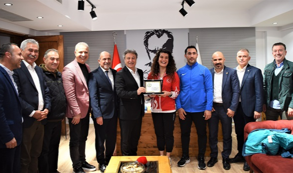 Bornova Belediyespor Kulübü Başkanı Hasan Yerakar, yönetim kurulu üyeleri bornova belediyesi Meclis Üyeleri, Antrenör Turgay Besler ve Rabia Kaya’nın ailesinin de katıldığı ziyarette Kaya, Başkan İduğ’a verdiği destek için teşekkür etti. 12 yıldır Halter sporu ile ilgilendiğini söyleyen milli sporcu Kaya, “Bu güne kadar birçok madalya aldım. Bu aldığım son madalya ile devlet sporculuğu unvanını da kazanmış oldum. Bana bu başarımda destek olan kulübüme ve Başkanımız Mustafa İduğ’a çok teşekkür ederim” dedi.