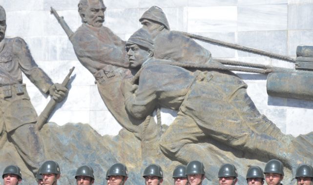 Kültür ve Turizm Bakanı Mehmet Nuri Ersoy, Çanakkale Kara Savaşları'nın 107'nci yıl dönümü dolayısıyla yabancı ülke temsilcilerinin de katılımıyla Şehitler Abidesi'nde düzenlenen anma töreni, Türkiye Cumhuriyeti adına Bakan Ersoy'un anıta ay yıldız motifli çelenk sunmasıyla başladı.Saygı duruşunda bulunulması, tören kıtası tarafından saygı atışı yapılmasının ardından program, İstiklal Marşı eşliğinde göndere Türk bayrağının çekilmesiyle devam etti.Bakan Ersoy, yaptığı konuşmada, Kara Savaşları'nın başlamasının üzerinden tam 107 yıl geçtiğini anımsattı.Asla eksilmeyen bir gururla ve yaşananları anlatmak, doğru ve eksiksiz anlaşılmasını sağlamak sorumluluğuyla Çanakkale Savaşları'nın milli ve manevi mirasını dillerinin döndüğünce paylaşma gayretinde olduklarını belirten Ersoy, şöyle konuştu:"Çanakkale, tek vücut olmuş Türk milletinin birlikte atan kalbi, beraber yürüdüğü yol, her şeyini feda etmeye hazır olarak kenetlendiği inanmışlıktır. İnsanın hayatına yön veren, neden yaşadığına dair farkındalığıdır. Bu farkındalığı edinenler seçimlerinde tereddüt etmez, pişmanlığa düşmez. Burada vatanını savunanlar ne için yaşadıklarını, hayatın nelerle anlam kazandığını ve neler kaybedildiğinde bu anlamın da yitip gittiğini çok iyi biliyorlardı. Ondan dolayı Osmanlı coğrafyasının dört bir yanından gelip omuz omuza verenlerin ve geri dönmeyi düşünmeyenlerin zaferidir Çanakkale."