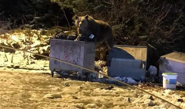 Uludağ'ın Sarıalan mevkiinde aç kalan ayılar yerleşim yerine indi. Burada bulunan çöp kutularında yemek arayan ayılar çöpleri devirdi.