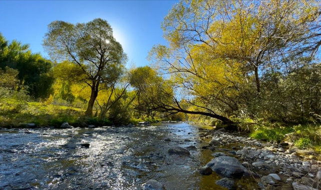 Bu yıl yurt genelinde yaşanan kuraklık nedeniyle su seviyesinin düştüğü derenin bulunduğu yöredeki söğüt ağaçları, yeşil ve sarının birçok tonuna bürünerek ayrı güzellik oluşturdu.