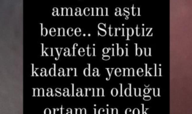 Gülşen'in dansını ve kostümünü abartılı bulan şarkıcı Ebru Polat, Instagram hesabından yaptığı paylaşımda "Külotla sahneye çıkma polemiğinde ben de birkaç kelime etmek istiyorum. İnsanlar istediği kıyafetle sahneye çıkabilir ve şov yapabilir. Buna kimse karışamaz. Ama Gülşen bence çok abartmış. İzzet'e sözde inadına gibi ama ben öyle olduğunu düşünmüyorum. İnadına külot giymiş, sütyen giymiş. Bunlara gene kimse bir şey demiyor ama sen kameraya domalmışsın ya. Neden bizim çoluğumuz, çocuğumuz, eşimiz senin oranı görsün? Çok abartmadın mı? O dans falan kötüydü, sana hiç yakıştıramadım. Çok ayıp çok ileri gittin" dedi.SERENGİL: STRİPTİZ KIYAFETİ GİBİ