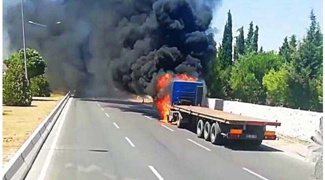 Edinilen bilgiye göre, öğle saatlerinde Bornova ilçesi 5. sanayi sitesi civarında bir tır aniden motor bölümünden alev aldı. Yangını fark eden şoför, hemen kendini dışarıya atarak itfaiye ekiplerine haber verdi. Yangının büyümesiyle tır adeta alev topuna döndü. Tırın yolun sağ şeritte yanması nedeniyle trafik de kontrollü olarak ilerledi. Kısa sürede bölgeye gelen itfaiye ekipleri, alev alev yanan tıra müdahale etti.