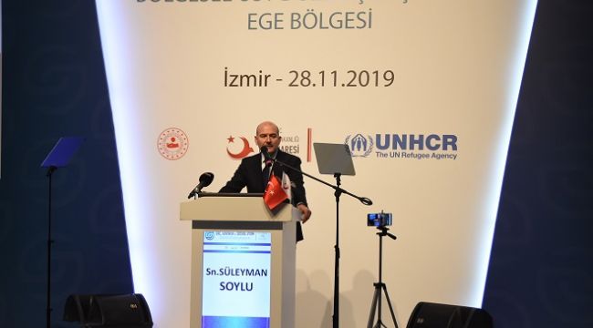 İçişleri Bakanı Süleyman Soylu, Göç İdaresi Genel Müdürlüğü Uyum ve İletişim Daire Başkanlığı ve Birleşmiş Milletler Mülteciler Yüksek Komiserliği Bürosu (BMMYK) işbirliğinde İzmir’de düzenlenen “Göç, Güvenlik ve Sosyal Uyum Bölgesel Üst Düzey Çalıştayları Ege Bölgesi” toplantısına katıldı. İzmir Valisi Erol Ayyıldız, İzmir İl Emniyet Müdürü Hüseyin Aşkın, Göç İdaresi Genel Müdürü Abdullah Ayaz, İzmir Büyükşehir Belediye Başkanı Tunç Soyer ve BMMYK Türkiye Temsilcisi Vekili Jean Marie Garelli de hazır bulundu.