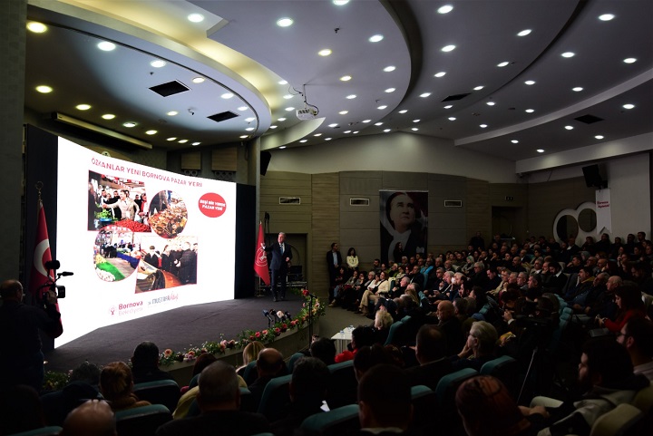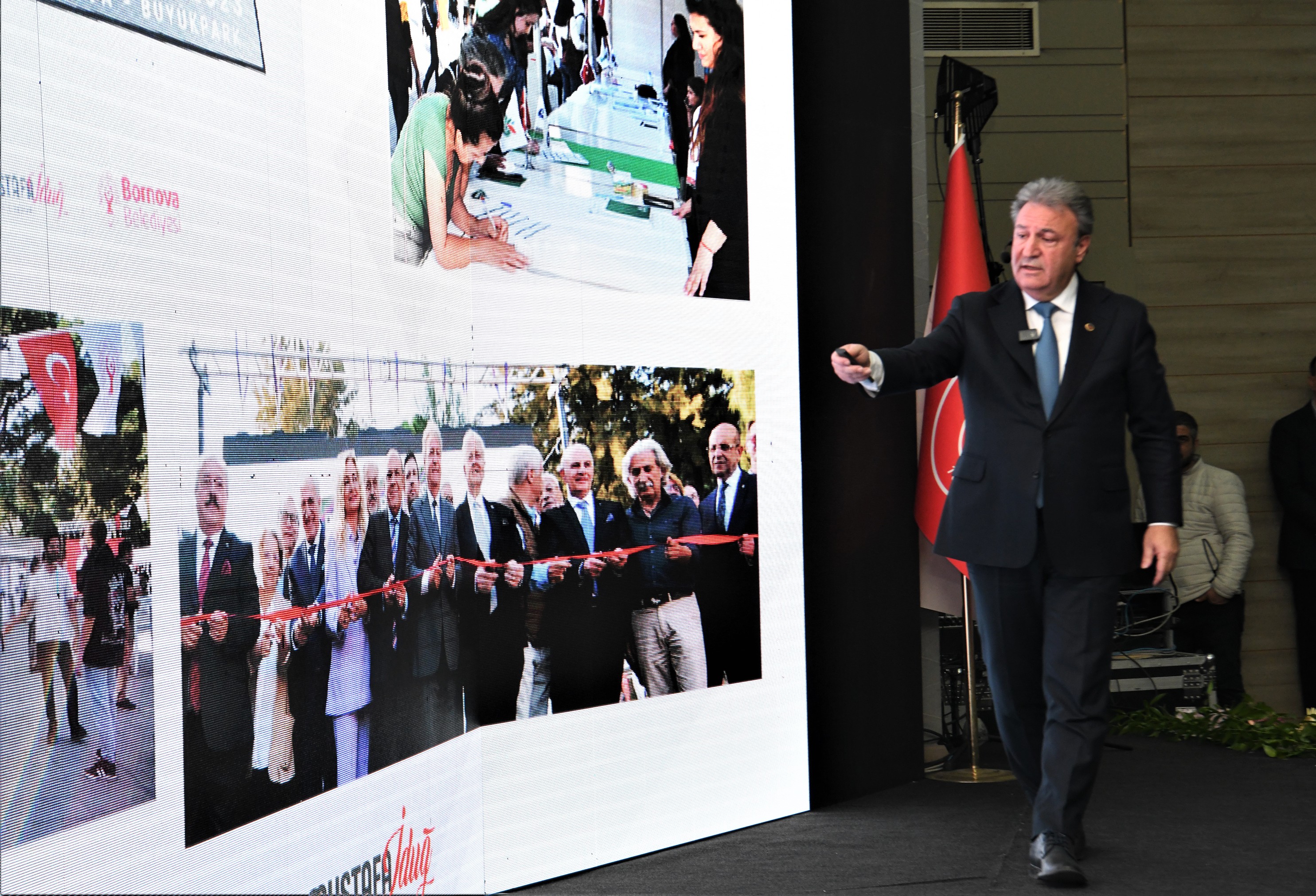Bornova Belediye Başkanı Dr. Mustafa İduğ, tam zamanında aldıkları yatırım kararları ve doğru satın alma yöntemlerini uygulamaları sayesinde Bornova Belediyesi'nin hem mal varlıklarını arttırdıklarını hem de kasasında para olan bir belediye haline getirdiklerini söyleyen Başkan İduğ, 2024-2029 yılları için de Bornova Belediyesi'nin güçlü ekonomik altyapısıyla hayata geçirmeyi istedikleri projeleri de anlattı. Kızılay Mahallesi’nin kentsel dönüşümle baştan yaratılacağını, Bornova’daki 62 bin konutun yüzde 85'inin yenilenmesi için çalışacaklarını söyleyen Başkan İduğ, “İki adet açık yüzme havuzu ve çok amaçlı aktivite merkezi, tarihi Darülkurra’nın restorasyonu, Girit Anı Evi restorasyonu, aşevi, Alzheimer merkezi, gençlik merkezi, askıda protein, askıda balık gibi projeler de 2024 ve sonrası için planladığımız çalışmalardan bazıları” diye konuştu.