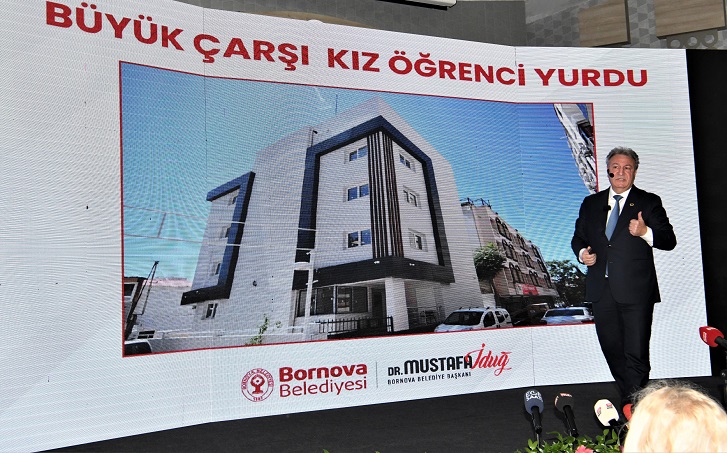 Üniversite öğrencilerinin en önemli sorunun barınma olduğunun altını çizen Bornova Belediye Başkanı Dr. Mustafa İduğ, “Sosyal belediyecilik anlayışımızla yurtlarımızın inşaatını başlattık. Büyük Çarşı’daki kız öğrencimiz tamamlandı. Binasını satın alıp güçlendirme yaptığımız diğer yurt binamız da 15 Mart 2024’te teslim edilecek. Toplamda 700 öğrenciye barınma imkanı sağlayacak bir çalışmanın içindeyiz” dedi.