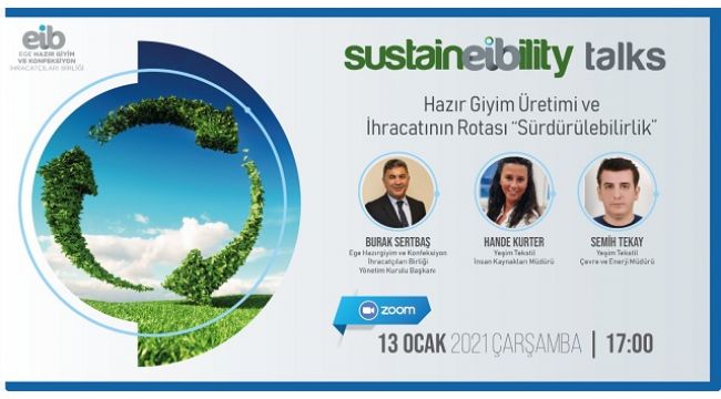 Ege Hazırgiyim ve Konfeksiyon İhracatçıları Birliği, “SUSTAINEIBILITY TALKS” webinar serisinin üçüncü bölümünde, üretim süreçleri, sosyal sorumluluk, Yeşil fabrika projeleri ve workshop’larıyla sürdürülebilirliği şirket kültürü olarak benimseyen Yeşim Tekstil ile fabrika içi tasarruf yöntemleri, Avrupa Yeşil Mutabakatı’na uyum süreci konuşuldu.