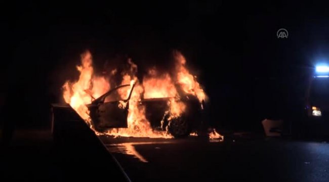 Sürücüsünün 'dur' ihtarına uymadığı otomobil polis araçlarına çarpıp alev aldı