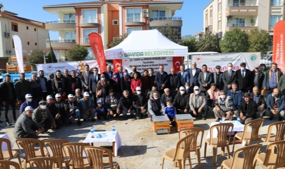 Tarım ve Orman Bakanlığının koordinesinde İzmir İl Tarım ve Orman Müdürlüğü tarafından, gerçekleştirilen "Damızlık Küçükbaş Hayvan Yatırım Hibe Programı" ve "Kovanlarımız Yenileniyor Bal ve Polen Üretimimiz Artıyor Projesi" kapsamında 36 üreticiye toplam 576 küçükbaş hayvan ve 75 Arı üreticisine kişi başı 5'er adet olmak üzere 375 kovan Bayındır’da düzenlenen törenle dağtıldı. Törene Bayındır Belediye Başkanı Uğur Demirezen ve Bayındır Kaymakamı Mehmet Ali Öztürk başta olmak üzere İzmir İl Tarım ve Orman Müdürü Mustafa Özen, AK PARTİ İzmir Milletvekili Yaşar Kırkpınar kamu kurum müdürleri, siyasi parti temsilcileri, muhtarlar ve üreticiler katıldı.