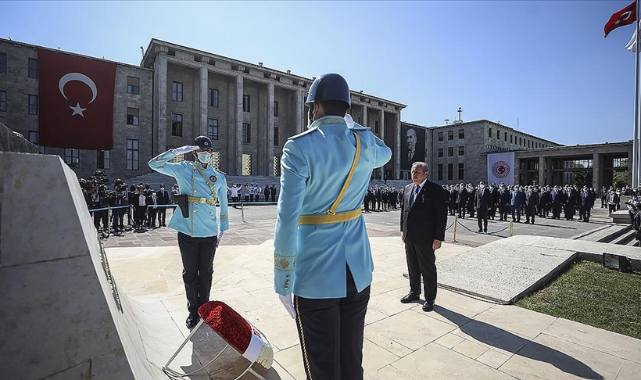 TBMM Başkanı Mustafa Şentop'un anıta çelenk bırakmasının ardından bando eşliğinde saygı duruşunda bulunularak, İstiklal Marşı okundu.