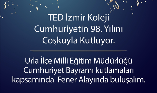 TED İzmir Koleji Müdürü Mine Mavioğlu konu ile ilgili yaptığı açıklamada, “TED İzmir Koleji’nde akademik olarak donanımlı; bilim, yabancı dil, spor, kültür ve sanat alanlarında başarılı Cumhuriyet çocukları yetiştiriyoruz. Böylesine anlamlı bir etkinliği düzenlemekten de gurur duyuyoruz. Cumhuriyet Bayramı coşkusunu birlikte yaşamak üzere, 7’den 77’ye herkesi Urla Meydanı’nda düzenleyeceğimiz Cumhuriyet Bayramı Fener Alayı’na davet ediyoruz” dedi.