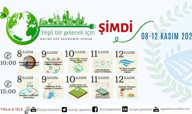 Ege Ekonomik Forumu’nun ilk günü açılış konuşmalarını İzmir Valisi Yavuz Selim Köşger, İzmir Büyükşehir Belediye Başkanı Mustafa Tunç Soyer, İzmir Ticaret Odası (İZTO) Yönetim Kurulu Başkanı Mahmut Özgener, Ege İhracatçı Birlikleri (EİB) Koordinatör Başkanı Jak Eskinazi, Ege Ekonomiyi Geliştirme Vakfı (EGEV) Yönetim Kurulu Başkanı Mehmet Ali Susam ve Özgencil Grup Yönetim Kurulu Başkanı Şeref Özgencil gerçekleştirecek.Üretimden istihdama, tarımdan teknolojiye katkılarıyla Türkiye’nin lokomotifi olan Ege Bölgesi’nin her alanda hedeflediği sürdürülebilir gelişimi için çok önemli paya sahip olan İzmir Ticaret Odası, Ege İhracatçı Birlikleri, Ege Bölgesi Sanayi Odası, İzmir Ticaret Borsası, ESBAŞ, İzmir Esnaf ve Sanatkârlar Odaları Birliği, ESİAD, İZSİAD ve EGİAD ilki 2017’de gerçekleştirilen Forum’un etki alanının geliştirilmesine, Ege Bölgesi’nin bu alandaki itici gücüne katkılarını sunmaya devam ediyor.Bu katkı neticesinde her seferinde daha çok ses getiren, Ege Bölgesi ve Türkiye’nin geleceği için pusula görevi gören Ege Ekonomik Forum, bu yıl da zengin içeriği ve birbirinden değerli ulusal ve uluslararası konuşmacıları ile çevrimiçi olarak “Yeşil bir Gelecek için: ŞİMDİ” başlığında iş dünyası ile buluşmaya, Egeliler ve tüm Türkiye’ye seslenmeye hazırlanıyor.Kültürel Bir Dönüşüme Hazır Mıyız?Yakın bir zamana kadar ekonomik faaliyetleri sadece üretim ve pazarlama ekseninde ele alınmasının, ekolojik sonuçlar üzerinde kafa yorulmamasının dünyayı getirdiği sonuçların ortada olduğuna dikkat çeken İzmir Büyükşehir Belediye Başkanı Sayın Tunç Soyer, “İklim krizi, günlük hayatımızda hepimizin hissettiği ve bedelini ödediğimiz bir gerçek. Şimdi insanlık sorunların temeline inmeyerek yalnızca alışkanlıklarımızın rengini ve şeklini mi değiştirecek, yoksa bizler meselenin özüne dokunup kültürel bir değişime mi öncülük edeceğiz? Henüz bilmiyoruz. Artık çok geç olmadan bu konuları konuşup bir sonuca varmak zorundayız. Ege Ekonomik Forumu’nun böylesine can yakıcı bir meseleyi ele alarak ‘Yeşil bir Gelecek için: ŞİMDİ’ başlığıyla toplanacak olmasını bu nedenle son derece önemsiyorum.” dedi.Bu yıl 5’inci yılını kutlayacak Forum’un çalışmaları ile hem bölgeye hem de Türkiye’ye bir vizyon sunduğunu hatırlatan EGEV Yönetim Kurulu Başkanı Mehmet Ali Susam, “EGEV’de yaptığımız çalışmaların amacı Ege Bölgesini iç ve dış yatırımcıya tanıtmak, kalkınmayı bölgesel olarak planlayarak, bölge illerinin tek başına var olan gücünü uyum ve iş birliği ile daha yüksek bir ekonomik potansiyele taşımaktır. Bu çerçevede EGEV olarak Özgencil Grubu ile bir araya gelerek oluşturduğumuz Ege Ekonomik Forum’da Ege Bölgesi’nin, Türkiye’nin bugün içinde bulunduğu koşullarda ekonomik kalkınma hamlesinin lokomotifi olabilecek güçte ve kararlılıkta olduğunu defalarca vurguladık. Bu kararlılık, dünyamızın bulunduğu iklim koşulları da dikkate alınarak, artık sürdürülebilirlik ile bütünleşmiş durumdadır. Başta İzmir Büyükşehir Belediyesi ve bölgenin tüm ticari paydaşlarının verdiği destekle, Sürdürülebilir ve Yeşil bir Gelecek için adımları atmak üzere tartışacağımız yol haritası sadece Ege Bölgesinin değil tüm Türkiye’nin haritası olacaktır.” dedi. Türkiye’nin geleceği için vizyon toplantılarının öneminin her geçen gün daha da anlaşıldığı, Ege Bölgesi’nin ülkemizin sürükleyici gücü olabilmesi için Ege Ekonomik Forum’unun oldukça anlamlı olduğunu hatırlatan Özgencil Grup Yönetim Kurulu Başkanı Şeref Özgencil, “Bu yıl yaşadığımız seller, yangınlar küresel iklim krizinin ne kadar içinde olduğumuzu gösterdi. Uzmanların 40 yıl önce uyarmaya başladığı iklim değişikliği, küresel bir sorun olarak artık hayatımızın bir parçası. Bir yanda sıcak hava dalgaları ile fırtınalar, hortumlar, seller ve yangınlar yaşam alanlarını tehdit etmekte, diğer yanda kuraklık dünya nüfusunun beslenme ihtiyacı için alarm sinyali vermekte. Bilim adamları tehlikeler konusunda net, teknoloji uzmanları da çözümler konusunda net. Peki bütün bu dönüşüm nasıl sağlanmalı? sorusundan hareketle EGEV ile birlikte oluşturduğumuz bu yılki Forumun sadece Ege Bölgesi için değil tüm Türkiye için önemli bir ışık tutacağına inanıyoruz.” dedi.2050’de 0 Karbon Salınımı İçin Dijitalleşme ve Sürdürülebilirlik ÖnemliDijitalleşmenin daha yeşil ve sürdürülebilir bir dünya için katkısının göz ardı edilmemesi gerektiğini belirten İzmir Ticaret Odası Başkanı Sayın Mahmut Özgener, “Dijitalleşmenin getirdiği hız, verim ve etki alanı değerlendirildiğinde çağa uyum sağlamak isteyen firmaların dijitalleşmeden uzak kalmalarının mümkün olmadığı görülüyor. Ege Ekonomik Forumu bu konuya bu yılda detaylıca dikkat çekmeye hazırlanıyor. Bu anlayıştan hareketle İzmir Ticaret Odası olarak, üyelerimizin dijital farkındalıklarının artırılması, dijital dönüşüm yolculuklarının desteklenmesi, dijitalleşen piyasa rekabet şartları karşısında dayanıklı ve rekabetçi hale gelebilmelerine katkı sağlanması hedefleri ile dijitalleşme kavramını odak noktasına koyan projeler yürütüyoruz.” dedi.II. Sanayi devrimi ile başlayan seri üretimin, her sektörde üretimin katlanarak artmasına, insanlığın konfor alanının genişlemesine katkı sağladığını, günümüzde ise krize dönüşen iklim değişikliğinin tohumlarını attığını hatırlatan Ege İhracatçılar Birlikleri Koordinatör Başkanı Sayın Jak Eskinazi, “Avrupa’nın 2050 için belirlediği karbon salınımı sıfırlama hedefi, Türkiye’nin hayata geçirdiği Yeşil 