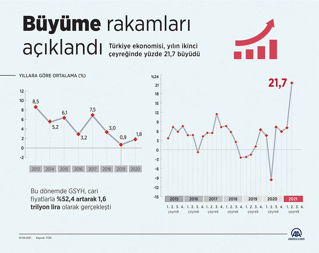 Ticaret Bakanı Mehmet Muş, ikinci çeyrekte elde edilen yüzde 21,7'lik büyüme rakamını değerlendirirken, büyümenin yarısının mal ve hizmet ihracatı kaynaklı gerçekleştiğini bildirdi.