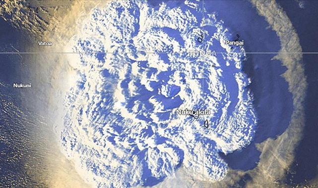 Bilim insanları Pasifik Okyanusu'nda yaklaşık 170 adadan oluşan Tonga'nın Hunga Ha'apai Adası'nda bulunan yanardağdaki patlamanın ardından dünyanın her yerinde yaşanan şok basınç değişimlerini araştırıyor.Bakırçay Üniversitesi Fen Edebiyat Fakültesi Fiziki Coğrafya Bölümü Öğretim Üyesi Prof. Dr. Şermin Tağıl, AA muhabirinin konuya ilişkin soruları üzerine, söz konusu yanardağında ilk olarak geçen cuma günü patlama olduğunu, ardından ise cumartesi günü Türkiye saati ile 07.10 sıralarında tekrar patlama yaşandığını hatırlattı.ABD Jeoloji Araştırmaları Kurumunun yanardağındaki patlamayı, sıfır derinlikte 5,8 büyüklüğünde bir depreme eş değer olarak açıkladığını ifade eden Tağıl, bu durumun Japonya'dan ABD'ye kadar Pasifik kıyılarında tsunami uyarısını tetiklediğini aktardı.Uydu görüntüleri incelendiğinde, atmosferik şok dalgasının, volkanik bulutun çevresinde hızla dışa doğru yayılan beyaz bir halka olarak görülebildiğini anlatan Tağıl, şöyle konuştu:"Atmosfer tek ve dengeli bir sistem olduğu için bir yerde gerçekleşen değişim diğer bir alanı da etkileyebilir. Volkanik patlamaların dünyayı soğutabilecek kadar büyük ölçüde stratosfere kükürt dioksit ve aerosol saldığı bilinmektedir. En son yaşanan volkanik patlamadan kaynaklanan toz bulutunun 30 bin 48 kilometre yükseltiye ulaştığı ve stratosfere kül geçişinin olduğu rapor edildi. Kükürtdioksit ve aerosolün atmosferin stratosfer tabakasına geçmesinin yansıması soğuma olarak gerçekleşmektedir. Volkanik-atmosferik şok dalgaları sonrasında hava basıncı bozukluklarına neden olan meteotsunami oluşup oluşturmayacağı da bir diğer tartışma konusu. Yanardağdan kaynaklanan gözlemlenebilir ani ve çarpıcı atmosferik etkilere ek olarak, bu durumun dünyanın iklimini etkileyip etkilemeyeceğini söylemek için çok erken. Uydu görüntülerinden soğumaya yol açacak büyük bir kükürtdioksit sütunu gözükmüyor bunun için daha çok veri toplanması gerektiği düşünüyorum."