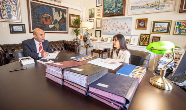İzmir Büyükşehir Belediye Başkanı Tunç Soyer, 23 Nisan Ulusal Egemenlik ve Çocuk Bayramı nedeniyle koltuğunu üç öğrenciye bıraktı.