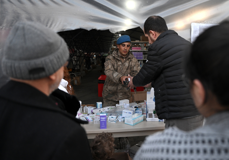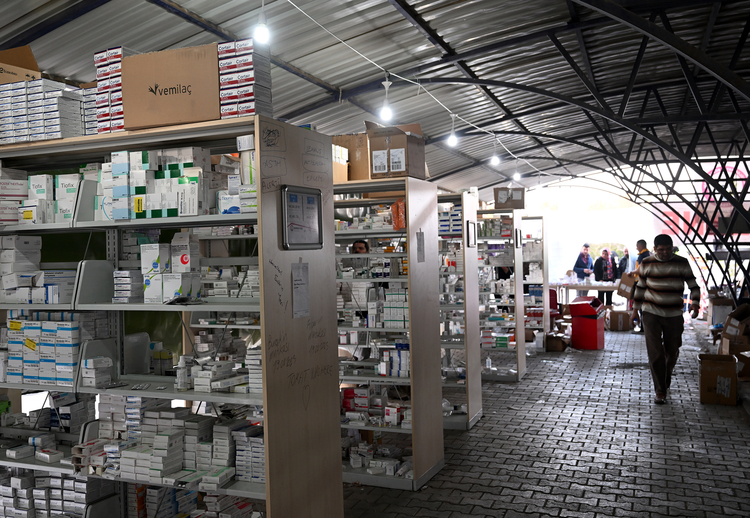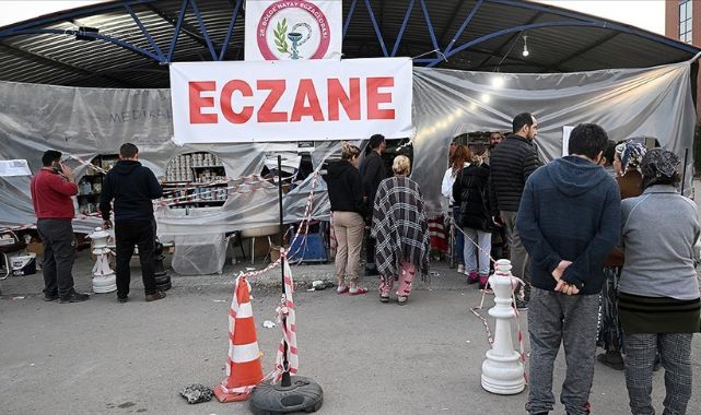 Bölgeye gönüllü gelen eczacıların görev aldığı eczanelerde, depremzedelerin ihtiyaç duyduğu ilaç ve tıbbi malzemelerin dağıtımı kolluk kuvvetlerinin gözetiminde yapılıyor.Bu kapsamda, Hatay Eczacı Odası İskenderun Temsilciliği tarafından İskenderun Teknik Üniversitesi yerleşkesindeki iki prefabrik yapıya yerleştirilen ve raflara dizilerek ayrıştırılan ilaçlar, depremin üçüncü gününden bu yana ihtiyaç doğrultusunda depremzedelere veriliyor.Afetzedelerin ücretsiz ilaç alabildiği eczanelerde bebek maması, kişisel hijyen malzemesi, hasta ve çocuk bezi gibi ürünler de depremzedelere ücretsiz veriliyor.