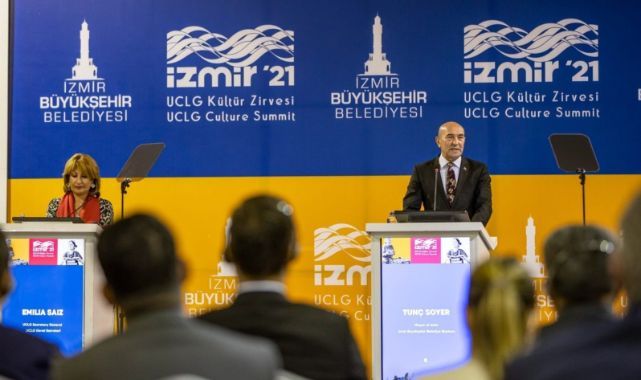 İzmir Büyükşehir Belediye Başkanı Tunç Soyer, İzmir’i sadece kültürü tüketen değil üreten bir şehir haline getirme hedefiyle yola çıktıklarını belirterek “İzmir Kültür Fonu (İzKF) projesi, özünde kültür üreten bir kent amacı taşıyor. Aynı zamanda bu kütür üretimine vatandaşların katılımını sağlamayı ve herkesin kültüre erişimini mümkün kılmayı amaçlıyor” dedi.