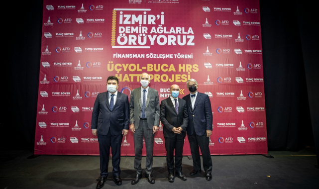 İzmir Büyükşehir Belediyesi, kent tarihinin en büyük yatırımı olacak Üçyol-Buca Metrosu için Avrupa İmar ve Kalkınma Bankası’nın (EBRD) ardından Fransız Kalkınma Ajansı (AFD) ile de 125 milyon Euro’luk dış finansman sözleşmesi imzaladı. Hazine garantisiz, 4 senesi anapara geri ödemesiz olmak üzere toplam 12 yıla uzanan vadeye sahip 125 milyon Euro tutarındaki dış finansman sözleşmesi İzmir Büyükşehir Belediye Başkanı Tunç Soyer ile Fransa’nın Türkiye Büyükelçisi Herve Magro ve AFD Balkanlar, Ortadoğu, Asya Direktörü Philippe Orliange tarafından imzalandı.