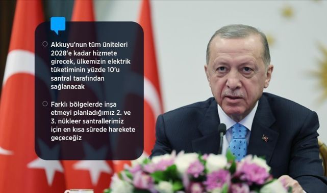 Akkuyu'da her biri 1200 megavat güce sahip 4 reaktörlü bir nükleer güç santrali inşa edildiğini kaydeden Erdoğan, şu değerlendirmelerini paylaştı:"Türkiye'nin pek çok önemli projesi gibi Akkuyu da milli bütçemize yük getirmeyen bir finansman modeliyle hayata geçirilmiştir. Akkuyu, Rusya ile aramızdaki en büyük ortak yatırımdır. Yatırım bedeli 20 milyar dolar olan bu proje, Rusya'nın ilgili kuruluşu ROSATOM tarafından tasarlanmış ve inşa edilmiştir. Projenin inşaatıyla birlikte bakım, işletme ve nükleer santraller için büyük önem taşıyan işletmeden çıkarma süreçlerinin sorumluluğu da yükleniciye aittir. Santralin tüm üniteleri peyderpey 2028'e kadar hizmete girecektir. Ülkemizin elektrik tüketiminin yüzde 10'u tek başına bu santral tarafından sağlanacaktır. Tam kapasite devreye girdiğinde burada yılda yaklaşık 35 milyar kilovatsaat elektrik üretilecek. Hiç şüphesiz sadece bu özelliğiyle bile santralimiz, ülkemizin enerji arz güvenliğine yaptığı eşsiz katkıyla stratejik yatırım unvanını hak ediyor. Doğal gaz ithalatımızın düşmesine yıllık 1,5 milyar dolar katkısı olacak bu proje, milli gelirimizin artışına da olumlu yönde etki yapacaktır."Buradaki birikim ve tecrübenin Türkiye'yi ileride nükleer alanında daha farklı yerlere de taşıyacağını dile getiren Erdoğan, proje kapsamında Rusya'da eğitim görerek santralde görev yapacak mühendis ve teknisyenlerin, Türkiye'nin nükleer güç alanındaki insan gücünü zenginleştireceğini söyledi. Erdoğan, 300'ü aşkın Türk mühendisin bu alanda Rusya'da eğitim gördüğünü bildirdi.