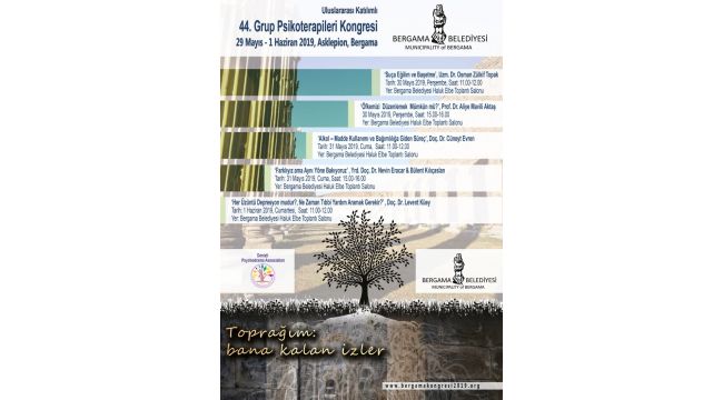 Denizli psikodrama Derneği'nin organizasyonunu üstlendiği ve Bergama Belediyesi’nin katkılarıyla bu yıl 44. kez düzenlenecek "Uluslararası 44. Grup Psikioerapileri Kongresi" 29 Mayıs-1 Haziran 2019 tarihlerinde Asklepion antik kentinde gerçekleşecek.
