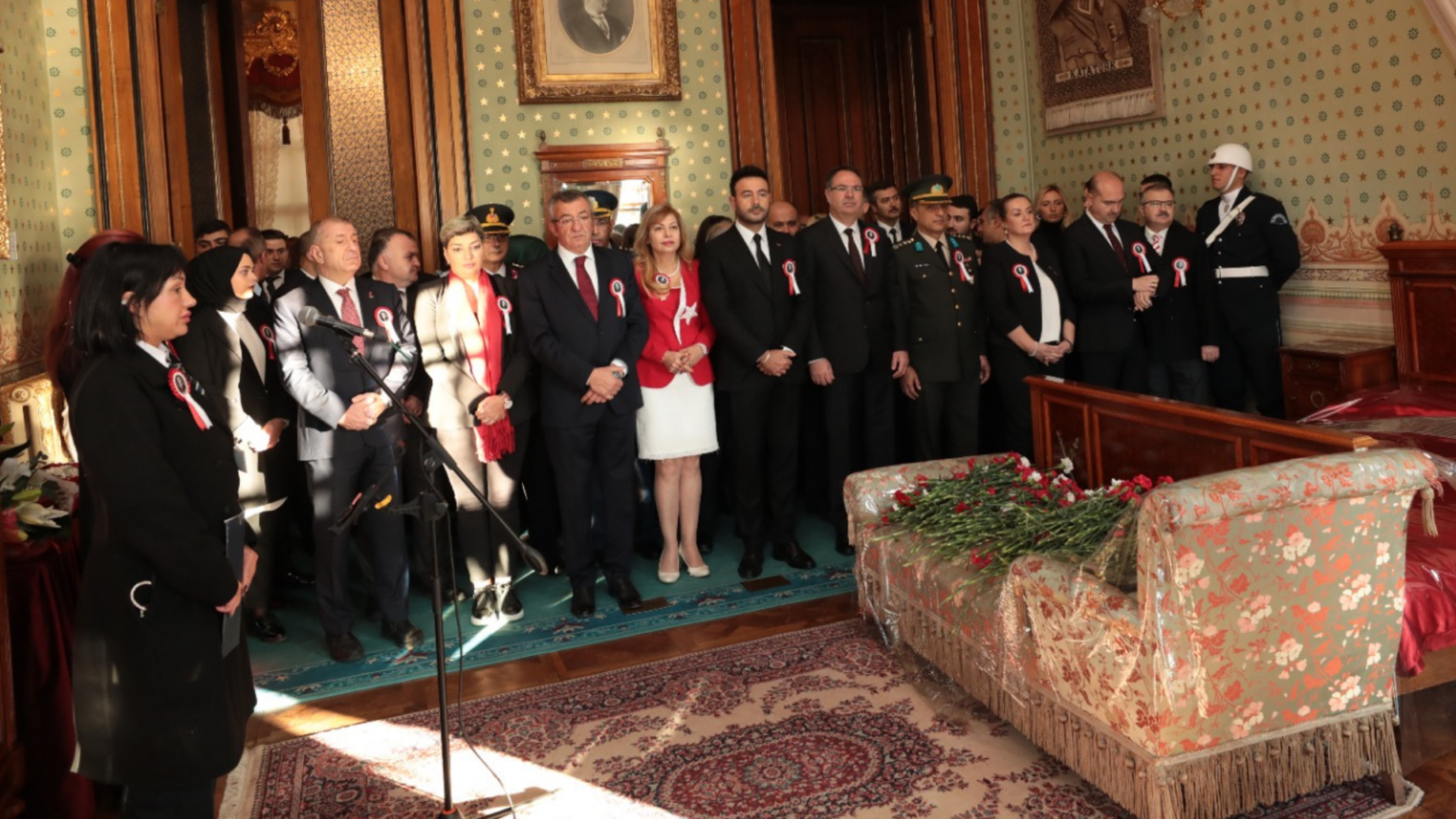 İstanbul’daki anma törenlerinin merkezi de her zaman olduğu gibi Dolmabahçe Sarayı oldu. Mustafa Kemal Atatürk’ün hayata gözlerini yumduğu Dolmabahçe Sarayı’ndaki törenlere katılan tek siyasi parti genel başkanı Zafer Partisi Lideri Ümit Özdağ oldu.Zafer Partisi Genel Başkanı Prof. Dr. Ümit Özdağ, Dolmabahçe Sarayı’nda Atatürk’ün son nefesini verdiği yatağın başında gerçekleşen saygı duruşunun ardından, Atatürk ve İstiklal Harbi kahramanlarına dua etti.Tören alanından ayrılırken, ziyaretçilerle de fotoğraf çektiren Zafer Partisi liderine gençler büyük ilgi gösterdi.