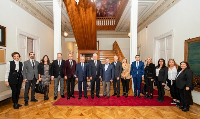 İzmir Büyükşehir Belediyesi Başkan Vekili Mustafa Özuslu, Ev ve Mutfak Eşyaları Federasyonu (EVFED) Yönetim Kurulu Başkanı İsmail Erdoğan ve federasyona üye derneklerin temsilcilerini makamında ağırladı. İZFAŞ Genel Müdürü Canan Karaosmanoğlu Alıcı’nın da katıldığı ziyarette sektör üyeleri yeni bir ihtisas fuarı taleplerini iletti. İzmir’in fuarcılık konusundaki tarihi misyonuna atıfta bulunan İzmir Büyükşehir Belediyesi Başkan Vekili Mustafa Özuslu, “Başkanımız Tunç Soyer İzmir’in tanıtımı için her şeyi yapıyor. Biz kamu olarak size destek olacağız ki işbirliğiyle büyük bir sinerji ortaya çıksın. Fuarcılığı büyüttükçe herkes kazanacak. Bu şehrin kalkınmasını, daha fazla turist gelmesini istiyoruz” diye konuştu.