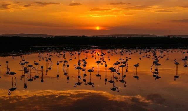Havaların ısınmasıyla konaklamak için Van Gölü Havzası'na gelen binlerce flamingo, iri gövdeleri, zarif boyunları ve uzun bacaklarıyla ziyaretçilerin dikkatini çekiyor.Van Gölü'nün Erciş ilçesindeki sulak alanlarda yoğunluk oluşturan flamingolar, doğaseverlerin yanı sıra fotoğraf tutkunları tarafından da ilgiyle izleniyor.Flamingoların beslenme, dinlenme ve gün batımında Van Gölü üzerindeki toplu uçuşları güzel görüntüler oluşturuyor.Doğa fotoğrafçısı Yasin Çiftçier, AA muhabirine, havzadaki kıyıların göç yolculuğundaki flamingoları ağırladığını söyledi.Flamingoları fotoğraflamak için bölgeye geldiğini belirten Çiftçier, "Flamingoların beyaz ve kırmızı renkleri, Van Gölü'nün mavi rengi ve gün batımının kızıl rengi ile birleşince doğa fotoğrafçıları için güzel fotoğraflar ortaya çıkarıyor. Biz fotoğrafçılar doğada her zaman ışığı kovalarız. Burada da güzel bir ışıkta flamingoları çekiyoruz." dedi.