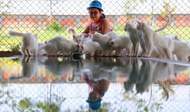 Cana yakınlığı, beyaz ve ipeksi kürkü, aslan yürüyüşü, uzun ve kabarık kuyruğu, farklı göz renkleriyle kentin en önemli değerleri arasında bulunan Van kedisinin popülasyonu, yürütülen koruma çalışmalarıyla arttı.YYÜ Van Kedisi Araştırma ve Uygulama Merkezinde yıllardır yürütülen çalışmalar sayesinde saf ırk sayıları yükselen kediler, bu yıl ilk doğumlarını tamamladı.Kedi Villası'ndaki odalarda özenle bakımları yapılan anne kedilerin dünyaya getirdiği 120 yavru kedi, sağırlık testi, aşı ve çip takma işleminden geçirildi.Yavrulardan göz renkleri farklı olan 20'si damızlık için ayrıldı, göz renkleri aynı olan 100'ünün de neslin sürekliliğinin sağlanması ve korunması amacıyla sekiz yıl önce başlatılan "Her evde bir Van kedisi" projesi kapsamında sahiplendirilmesine karar verildi.Kentin en önemli canlı kültür mirası olma özelliğini taşıyan kedileri evlerinde beslemek isteyenler, merkeze yaptıkları başvurunun olumlu sonuçlanmasıyla Van kedisi sahibi olabiliyor.Merkez Müdürü Prof. Dr. Abdullah Kaya, AA muhabirine, yapılan bilimsel araştırmaların kedilerin popülasyonuna olumlu yansıdığını anlatan Kaya, "Bu sene üretimimiz gayet iyi. Yani kapasitemizi aşacak düzeyde bir üretim söz konusu. Dolayısıyla bu yıl her yönüyle çok memnunuz. Ziyaretçi sayısı açısından da çok iyi durumdayız. Salgının etkilerinin azalmasıyla insanlar rahatlıkla kedileri ziyaret edebiliyor. Ziyaretçi sayısı giderek artıyor. Bu rakam bayramda üst düzeye çıkacak. Önceki yıllarda hafta sonları 600-700 ziyaretçi oluyordu. Şimdi bu sayının üç katına çıktık." diye konuştu.Bu yıl doğan kedilerden 100'ünü sahiplendirmeye başladıklarını anlatan Kaya, şunları kaydetti:"Kedilerimiz üçüncü parti doğumlarını henüz gerçekleştirmedi. Şimdiden kapasitemizin üstüne çıktık. Dolayısıyla 100 kedimizi sahiplendireceğiz, yani aileleriyle buluşturacağız. Ücretli sahiplendirme bayram tatili süresince devam edecek. Sahiplendireceğimiz yavruların burada geçirmesi gereken bir süre var. Bu sürede annesinin yanında kum eğitimi alıyor. Süt emmeyi bırakması, katı gıdaya alışması gerekiyor. Annesinden tamamen bağımsızlaştıktan sonra toplu yaşama alıştırmadan sahiplendiriyoruz. Ondan sonra yeni ailesiyle tanıştırıyoruz. Sahiplendirmeden önce sağlık testlerini yapıyoruz. Doğan her hayvanın sağlık karnesini çıkarıyoruz, pedigri (soyağacı) ve takip sistemini oluşturduktan sonra sahibine veriyoruz. Gittiği yerde takip sistemi sayesinde takip etme imkanımız oluyor. Sokağa düşerse bize ait olduğu kesinlikle ortaya çıkıyor. İki gözü mavi ya da iki gözü kehribar olanları veriyoruz. Diğer hayvanları damızlık olarak ayırıyoruz. Onun için bir gözü mavi diğer gözü kehribar olanları sahiplendirmiyoruz."Kedilerin hediye olarak verilmemesi gerektiği konusunda uyarılarda bulunan Kaya, "Hayvandan hediye olmayacağına inanıyoruz. Bir insan ortak bir kararla evine hayvan almalı. Çünkü hayvan almak geçici bir heves değil. Evinize başka bir canlı alıyorsunuz. Dolayısıyla bunun süreklilik arz etmesi gerekiyor. Onun için sahiplendirme yaparken buna çok büyük özen gösteriyoruz." dedi.Kedi Villası'nı ziyaret eden İranlı turist Şehnaz Murtehabi de "İlk kez buraya geliyorum. Van kedileri çok temiz ve çok güzeller. Gözleri renkli, tüyleri bembeyaz. Mama verdik, çok sevdik. Özellikle yavruları çok güzel." ifadelerini kullandı.