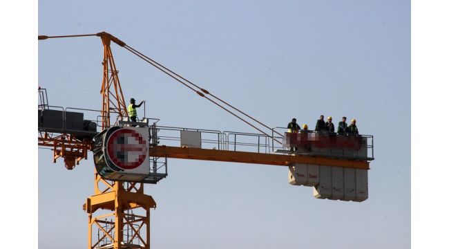 İzmir Konak'ta bir şantiyede çalışan 8 işçinin, maaşlarını 5 aydır alamadıklarını iddia ederek vincin üzerine çıkmasıyla başlattıkları eylem sona erdi.