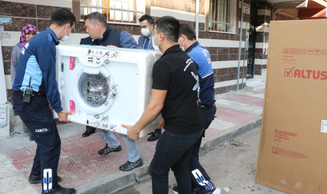 Manisalı vatandaşların yaşadığı zorluklar karşısında her zaman yardım elini uzatan Manisa Büyükşehir Belediyesi, evi yanan bir aileye daha eşya desteğinde bulundu.