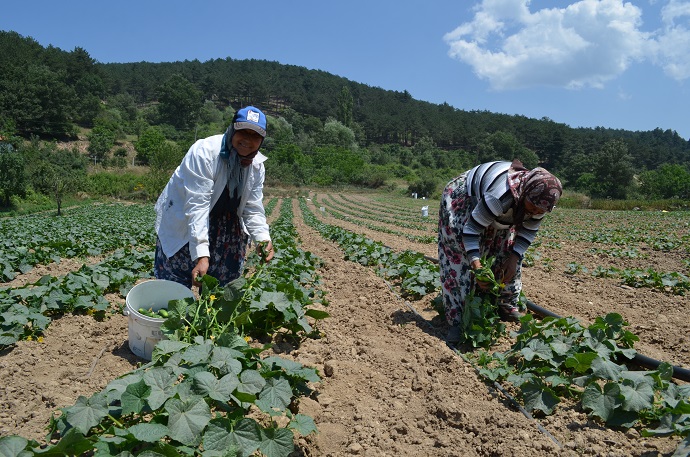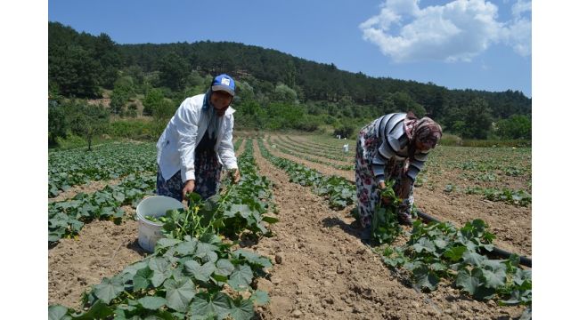 Balıkesir'in Sındırgı ilçesi yaylabayır mahallesinde, turşuluk salatalık olarak bilinen kornişon hasadı başladı