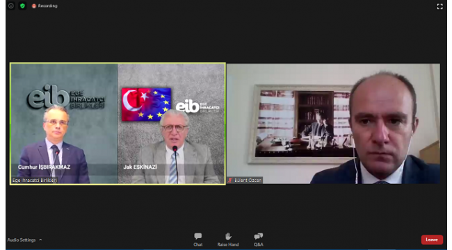 Ege İhracatçı Birlikleri’nin düzenlediği online video konferansta Dışişleri Bakanlığı Avrupa Birliği Başkanlığı Mali İş Birliği ve Proje Uygulama Genel Müdürü Bülent Özcan’ın katılımıyla Avrupa Birliği’nin 2027 yılına kadar sürecek yeni döneminde Türkiye’nin yararlanacağı programlar ve proje hibeleri konuşuldu.