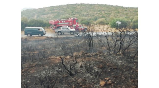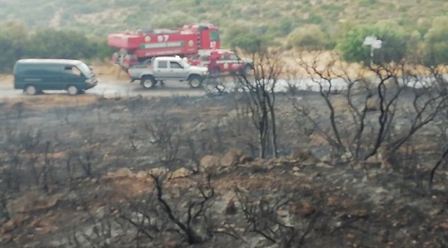 İZMİR (İHA) - İzmir'in Çeşme ilçesi Ildır Mahallesi'ndeki makilik alana düşen iki yıldırım, yangına yol açtı. Ekiplerin müdahalesi ile makilik alandaki yangın yayılmadan kısa sürede söndürüldü.