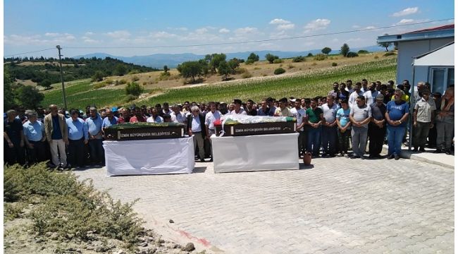 İZMİR (İHA) - İzmir'in Kınık ilçesinde, sağanak yağış sırasında tarlalarındaki tütünün ıslanmasını önlemek isterken yıldırım düşmesi sonucu yaşamını yitiren Bayram Türkmen ile 14 yaşındaki kızı Tülin Türkmen gözyaşları arasında toprağa verildi. 14 yaşındaki Tülin'in tabutuna gelinlik duvağı örtülmesi ise yürekleri dağladı.