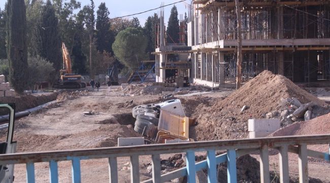 İZMİR (İHA) - İzmir'de, Ege Üniversitesi Kampüsü yanında bulunan bir yurt inşaatında hafriyat kamyonunun devrilmesi sonucu kamyon sürücüsü yaralandı.