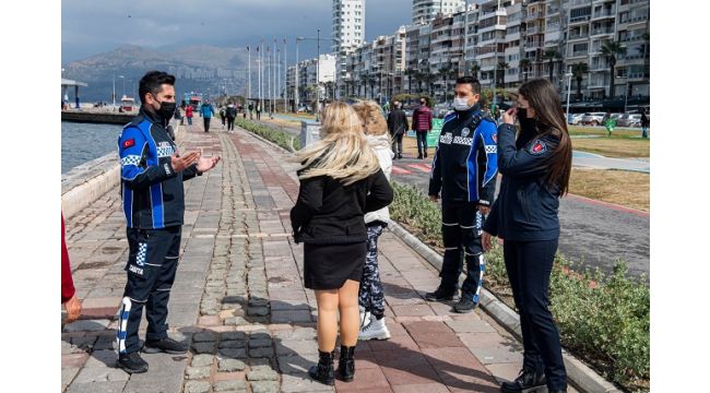 Zabıta Amiri Vedat Ayyıldız, İzmir Büyükşehir Belediyesi Zabıta Dairesi Başkanlığı'nın yetkili olduğu sahil, cadde, meydan, bulvarlarda sosyal mesafenin korunması, maske takılması, hijyen kuralları ile ilgili çalışmaların sürekli yapıldığını ancak kontrollü normalleşmeyle birlikte bu denetimlerin artırıldığını söyledi. Zabıta Dairesi Başkanlığı'na bağlı Denetim Şube Müdürlüğü ekiplerinin sokaklarda sosyal mesafeye uyulması konusunda anonslar yaptığını belirten Vedat Ayyıldız, Çevre İmar Şube Müdürlüğü ekiplerinin ise otogar ve alışveriş merkezlerinde sosyal mesafenin korunması için çalışma yürüttüklerini ifade etti. İzmir'de yaşayan yurttaşların, kurallara karşı duyarlı olduğunu vurgulayan Ayyıldız, “Kurallara uyan ve bize yardımcı olan yurttaşlara teşekkür ediyoruz” dedi.